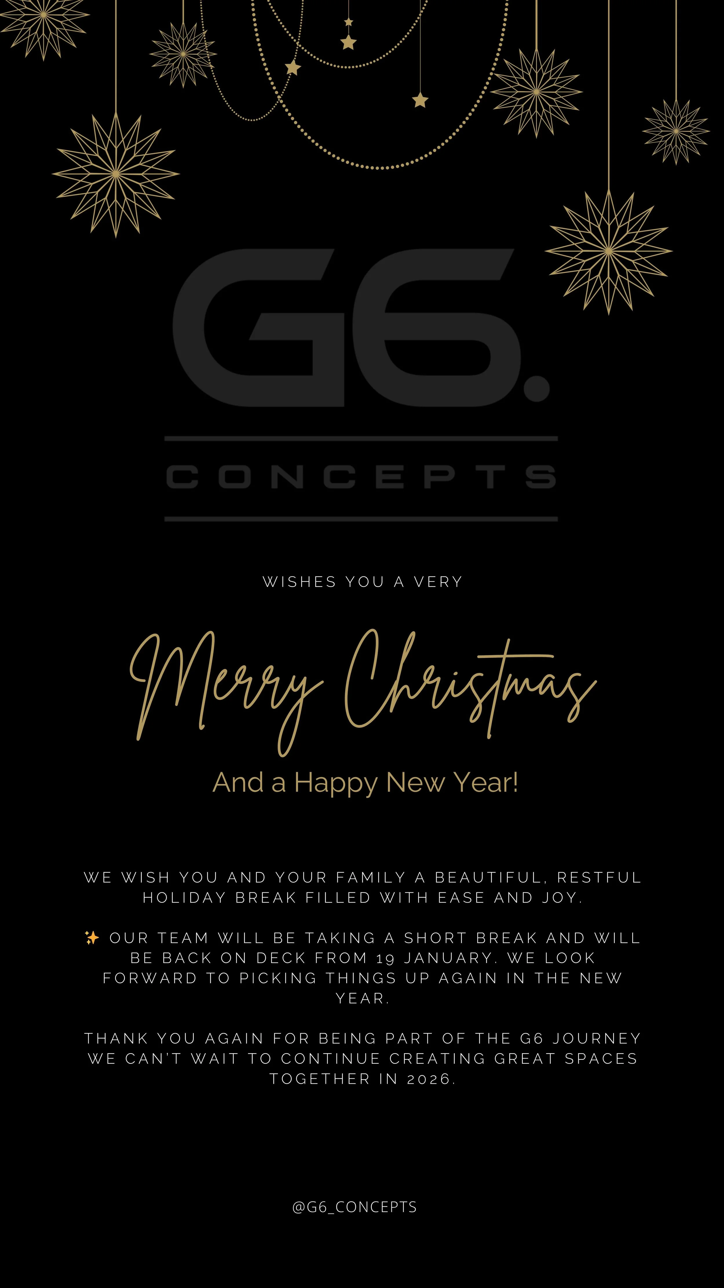 Thank you for considering G6 Concepts for your next project! We are excited about the opportunity to collaborate with you and bring your vision to life. Whether you're looking to discuss ideas, explore creative solutions, or request a personalised proposal, our team is here to make the process seamless and impactful. Don't hesitate to reach out – we're ready to transform your project into something extraordinary.